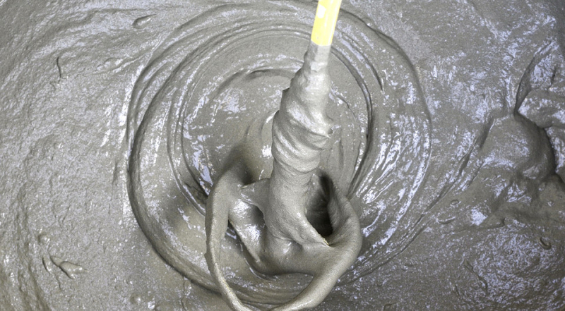 - Мешайте смесь строительным миксером, пока не получится однородная масса.